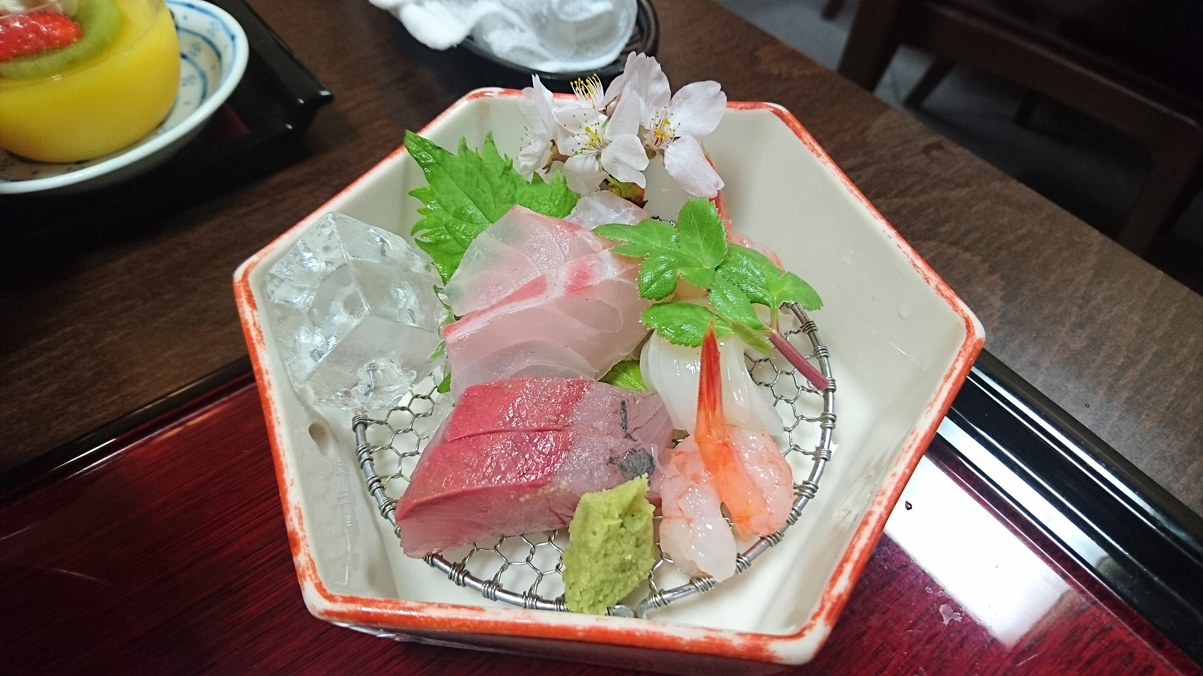 - Sashimi (in Scheiben geschnittener roher Fisch)